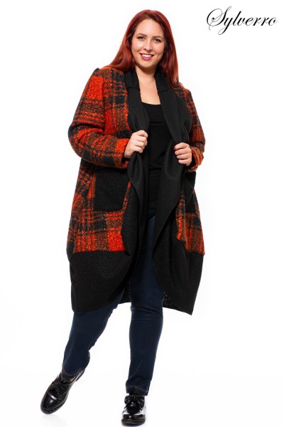 Weiches, warmes, waschbares, lockeres Stück. Eine fröhliche, leichte, modische Strickjacke mit lockerer Passform. Mit Tasche auf der Vorderseite und großem Kragen. Abmessungen; Länge: 115 cm, auf der Brust in der Mitte gefaltet: 70 cm, Hüfte: 80 cm. Passt L-5XL, Einheitsgröße.
