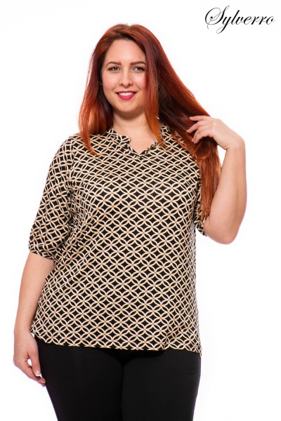 Den wahren Luxus verleihen das hervorragende, hochwertige Material und das angenehme, dezente Muster. Ein Oberteil mit einem losen Riemen am Ärmelende, ellenbogenlangen Ärmeln und einer leicht A-förmigen Form am unteren Ende. Ein edles Stück für jeden Anlass. So bleibt es lange schön!
