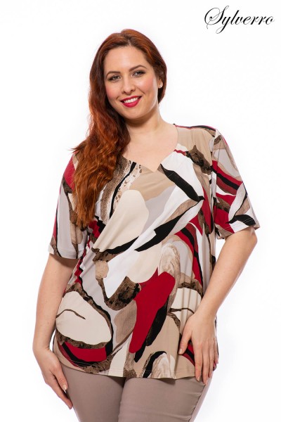 Gemustertes, kurzärmeliges Top, das bis zum Ellbogen reicht – bequem und stylisch
