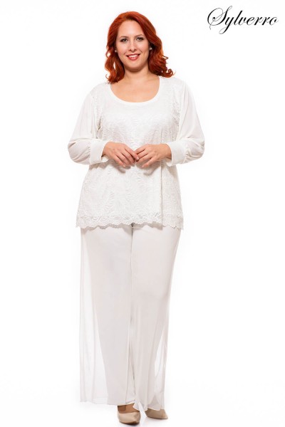 Ein hübsches, lässiges Top mit leicht glänzender Spitze vorne und hinten. Seine Ärmel bestehen aus elastischem Mesh. Ein wirklich elegantes Stück in einem blassen Cremeton.