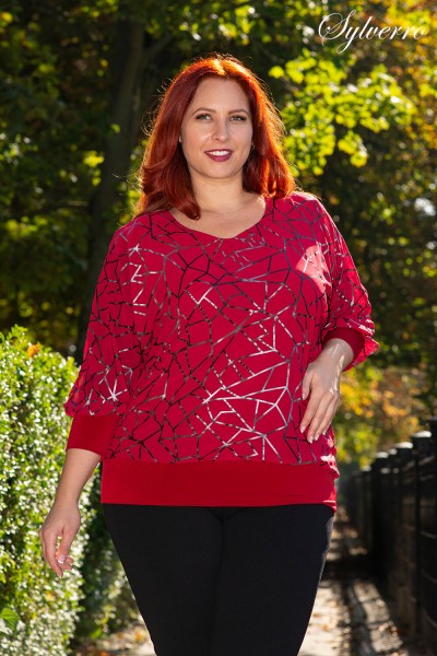 Elegantes gemustertes Musselin-Top mit bequemen und schmeichelnden Falten am unteren Rand und an den Manschetten. Der untere Teil ist ein elastisches Oberteil und die Oberseite besteht aus einer lockereren Musselinschicht. Der schöne V-Ausschnitt streckt die Figur. Ein bequemes und modisches Stück für jeden Anlass.